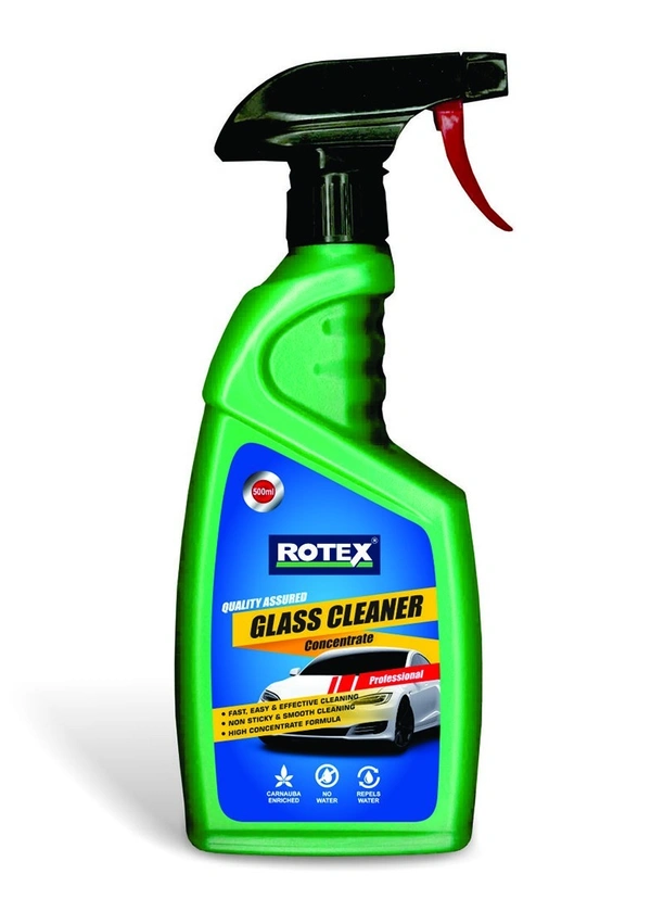 Rotex Glass Cleaner 500 ml Spray is a streak-free cleaning solution designed to give car windows, mirrors, and glass surfaces a crystal-clear shine. Its fast-acting formula removes dust, dirt, fingerprints, smudges, and water spots with ease. Safe for tinted and untreated glass, it leaves no residue behind and ensures improved visibility. The convenient spray bottle makes it easy to apply, perfect for both everyday use and professional detailing.