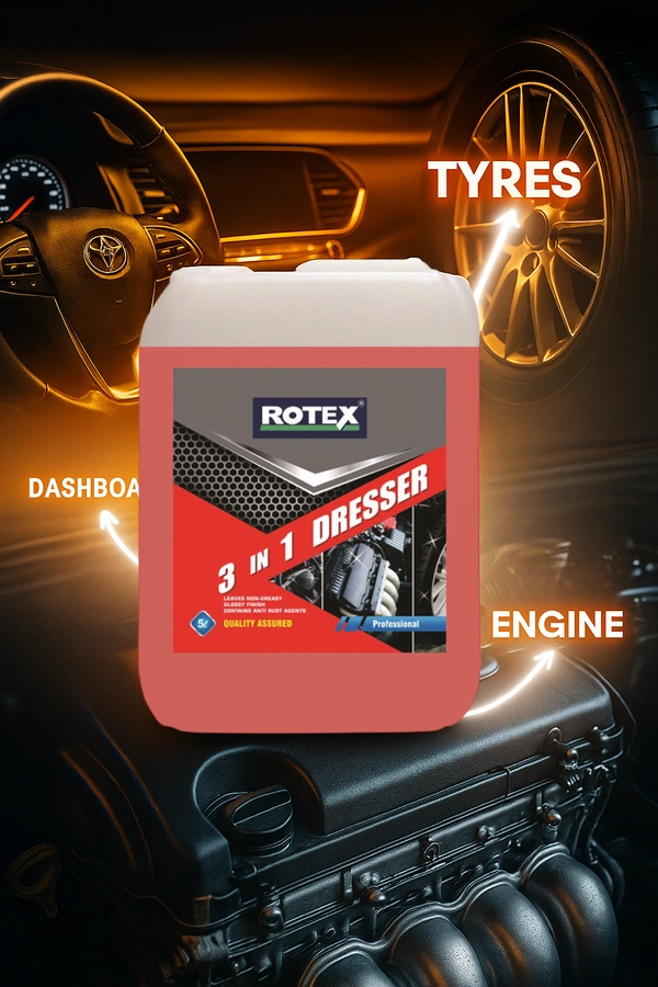 ROTEX 3 in 1 Dresser is a professional-grade formula designed to clean, protect, and shine in one easy step. Suitable for dashboards, trims, tyres, and rubber parts, it leaves behind a non-greasy glossy finish while protecting surfaces from dust, fading, and cracking. Enriched with anti-rust agents, it ensures long-lasting protection and an enhanced look for your vehicle.