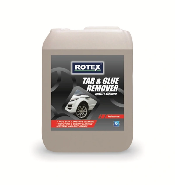 Rotex Tar & Glue Remover 5 Ltr is a high-performance cleaning solution formulated to dissolve and remove tar spots, adhesive residues, glue, tree sap, and stubborn road grime from vehicle surfaces. Its fast-acting formula penetrates deeply to break down sticky contaminants without damaging paint, glass, plastic, or metal. Easy to apply and rinse, this remover is an essential product for professional detailers and car owners who want to keep their vehicles spotless and glossy.