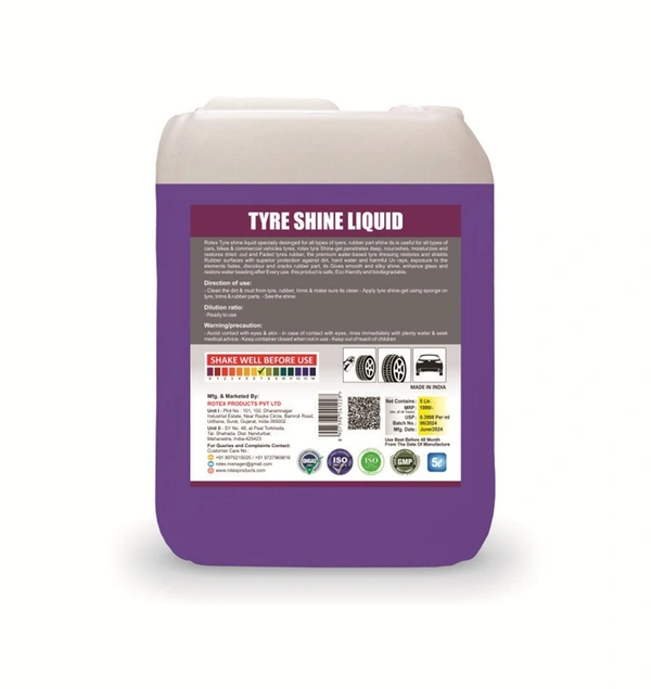 ROTEX Tyre Shine Liquid is specially formulated to give tyres a deep, long-lasting glossy shine. It not only enhances the appearance of your vehicle but also protects tyres from premature cracking and fading. Designed for quick and easy application, it works effectively on all types of rubber, trims, and surfaces, leaving them smooth, shiny, and well-protected.